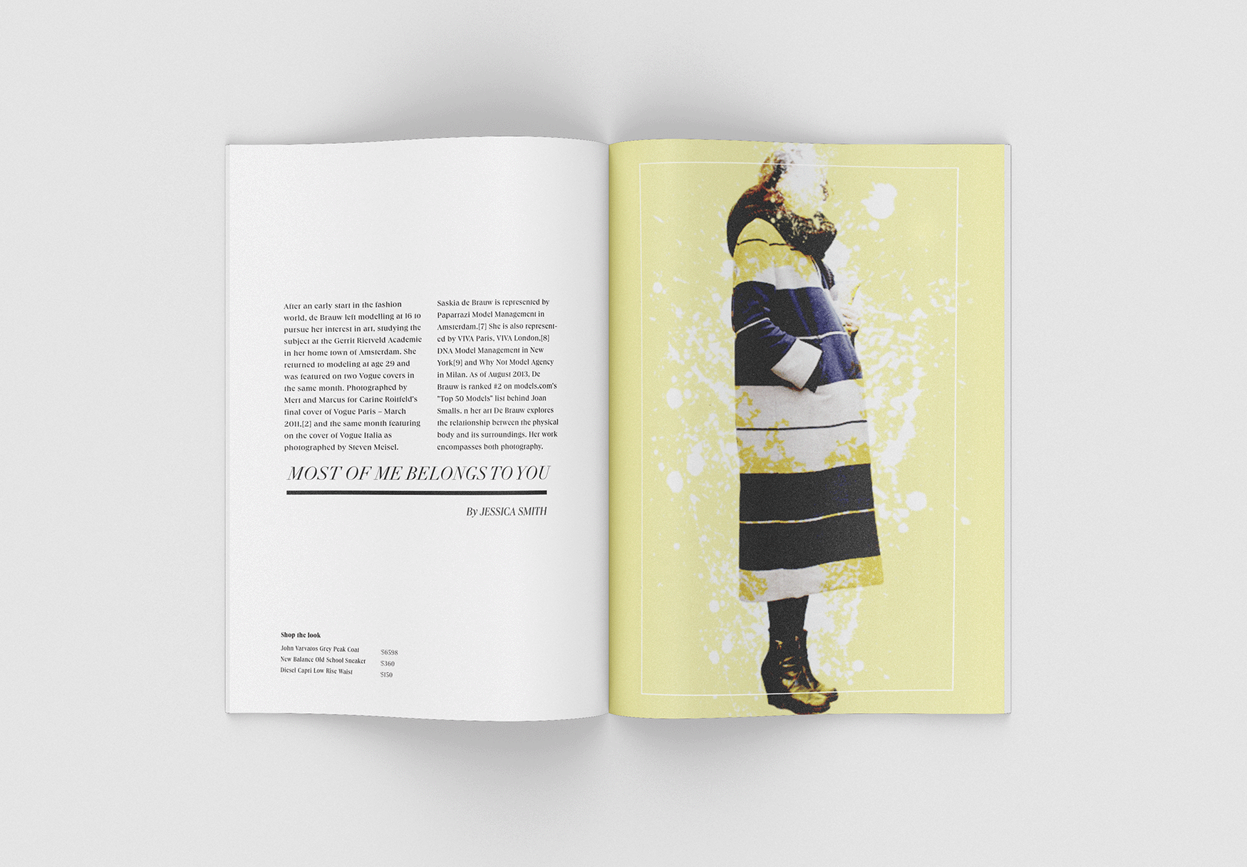 Anonymity explores the tension between exposure and concealment. Each spread pairs a real interview — rewritten in a poetic, melancholic voice — with fashion photography where the subject's identity dissolves behind paint splatter and mixed media textures. The editorial balances intimacy with anonymity, letting readers connect with the words without ever seeing a face. A 'shop the look' section grounds each spread in something tangible — brand, garment, price — bridging raw storytelling with commercial fashion editorial.